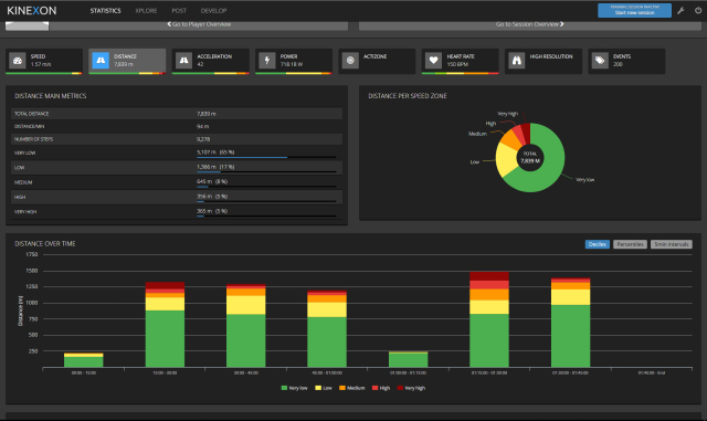 KINEXON's tracking technology calculates athletes' metrics to provide solutions for performance profiling, loads and injury management. All live data and metrics can be visualized on KINEXON's analytics platform, which is compatible with most devices and computers and offers countless metrics tailored to individual needs.